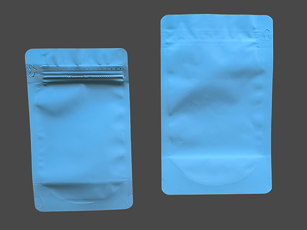 Available in matte finishes, the Blue stand-up bag can be supplied unprinted (low MOQ) or with custom branding for private label production.