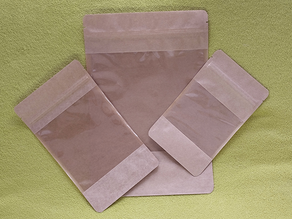 Available in kraft finishes, the brown stand-up windowed bag can be supplied unprinted (low MOQ) or with custom branding for private label production.