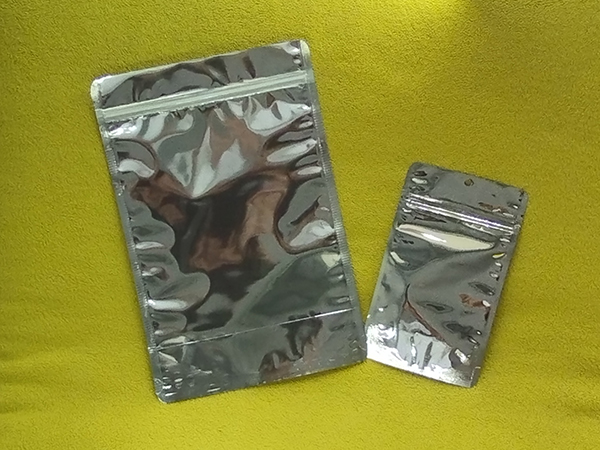 The transparent silver metalized stand-up bag can be supplied unprinted (low MOQ) or with custom branding for private label production.
