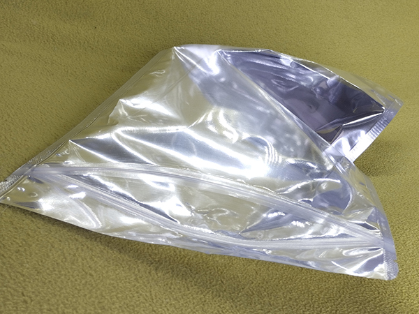 The transparent silver metalized bag offers a premium shelf appearance while the resealable zipper ensures consumer convenience and product reusability.